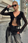 Acı Kahve V Yaka Bağlamalı Önü Fırfırlı Tül Bluz BCHZCK-251264