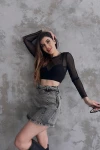 Antrasit Yırtmaç Detaylı Denim Şort Etek