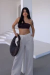 Bej Beli Lastikli Muslin Dokuma Pantolon