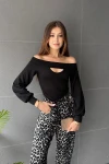 Beyaz Kayık Yaka Dekolte Detaylı Kolu Manşetli Bluz