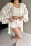 Beyaz Kolları Volanlı File Hırka