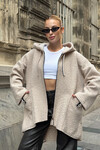 Bordo Kapüşonlu Çift Cepli Oversize Buklet Ceket Mont