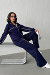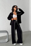 Bordo Yumuşak Dokulu Biyeli Palazzo Pantolon Ve Fermuarlı Sweatshirt Takım