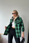 Canlı Yeşil Kapüşonlu Ekose Desenli Oversize Kaşe Gömlek