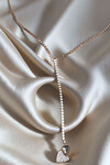 Çelik Zirkon Taşlı Su Yolu Y Kadın Kolye Gümüş Renk