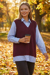 Ekru Gömlek Detaylı V Yaka Triko Süveter Bluz BCHPK-251251