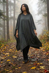 Ekru Kapüşonlu Yırtmaçlı Triko Panço