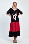 Fuşya Nakış İşlemeli Maxi Boy Dokuma Viscon Elbise