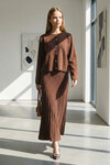 Gri Bisiklet Yaka Düğmeli Hırka Ve Pliseli Midi Boy Etek Takım BCHPK-251252