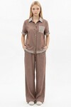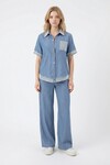 Gri File Detaylı Tensel Kot Kumaş Gömlek Ve Pantolon Alt Üst Takım BCHN-2626109