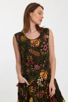 Haki Bisiklet Yaka Çift Cepli Sıfır Kol Çiçek Desenli Rahat Kalıp Elbise