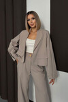 Haki Çift Cep Kapaklı Ceket Ve Palazzo Pantolon Dokuma Alt Üst Takım BCHN-254002