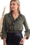 Haki Kruvaze Fırfırlı Etek Gipeli Uzun Kol Bluz