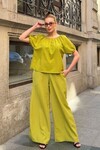 Haki Madonna Yaka Kendinden Dokulu Alt Üst Takım ;%100 Keten