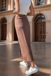 Kahve Beli Lastikli Düğmeli Yırtmaçlı Kaşkorse Etek