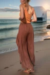 Kahve Yanı Fırfırlı Yırtmaçlı Beli Lastikli Belmando Salaş Şalvar Pantolon