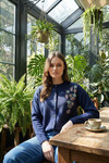 Kahverengi Düğmeli Çiçek Nakışlı Kışlık Triko Hırka