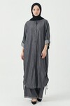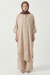 Kahverengi Yanları Büzgülü Uzun Boy Gömlek Pantolon Tensel Kumaş Tesettür Alt Üst Takım