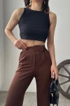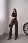 Kahverengi Yüksek Bel Pileli Palazzo Pantolon