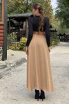 Karamel Yüksek Bel Lastikli Uzun Etek BCBSK-25700-3676