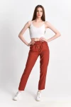 Kiremit Düğmeli Cepli Dokuma Pantolon