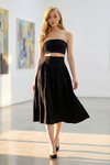 Lacivert Yüksek Bel Geniş Kemerli Gizli Fermuarlı Midi Boy Dokulu Etek BCHNT-251236