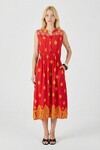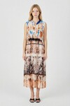 Leopar Çentik Yaka Düğmeli Desenli Kolsuz Midi Elbise