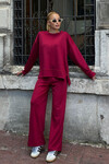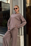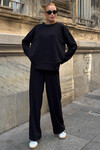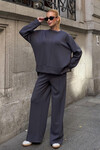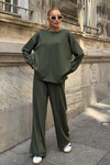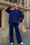 Mavi Bisiklet Yaka Yırtmaç Detaylı Bluz Ve Rahat Kesim Pantolon Yumuşak Dokulu Modal Alt Üst Takım