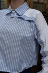 Mavi Özel Tasarım Yaka Kol Düğmeli Çizgi Garnili Crop Boy Bluz Gömlek