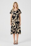 Mercan Derin V Yaka Yırtmaçlı Desenli Midi Boy Elbise