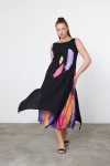 Mor Baskılı Parça Detaylı Viscon Elbise