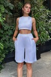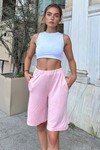 Mor Duble Paça Yumuşak Dokulu Cepli Şort