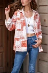 Mor Kendinden Desenli Gabardin Düğmeli Çift Cep Ceket Gömlek