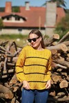 Pembe Geniş Yaka Saç Örgü Motifli Çizgili Kışlık Triko Kazak
