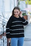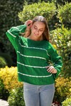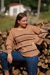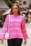 Pembe Geniş Yaka Saç Örgü Motifli Çizgili Kışlık Triko Kazak BCES-253013
