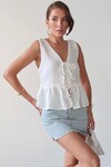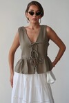%100 Pamuk ; Ürün Boyu : 57 Cm Göğüs : 88 Cm Yaka Derinliği : 23 Cm ; Kadın Giyim Koleksiyonundaki Bu Bluz, V Yaka Ve Keten Karışımlı Tasarımıyla Öne Çıkar.; V Yaka Formu Boyun Hattını Daha Açık Bir Görünümle Tamamlar.; Keten Yapı Ve V Yaka Detayı Birlikte, Ürünün Formunu Daha Belirgin Gösterir.; Gardırobunuzda Uzun Süre Yerini Koruyacak, Zamansız Bir Alternatif Olarak Öne Çıkar.; Sezonun Enerjisini Yansıtan Tasarımıyla Öne Çıkar Ve Sezon Boyunca Rahat Bir Kullanım Sunarak Pratik Bir Seçenek Oluşturur.; ; Numune Bedeni : S/36/1;Modelin Ölçüleri: Boy: 1.70, Göğüs: 80, Bel: 58, Kalça: 89, Beden: S/36/1;Stüdyo Çekimlerinde Renkler Işık Farklılığından Dolayı Değişiklik Gösterebilir.; ;Kadın Sarı Önü Bağlamalı Kolsuz Bluz