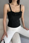 Siyah Askılı Fiyonk Süs Detaylı Dokuma Bluz