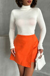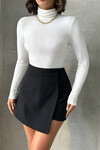 Siyah-Beyaz 2 Düğmeli Tüvit Kumaş Şort Etek