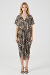 Siyah-Beyaz Desenli V Yaka Salaş Kesim Kaftan Elbise