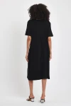 Siyah Beyaz Nakış İşlemeli Örme Viscon Elbise