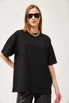 Siyah Bisiklet Yaka Basic 2 İplik Rahat Kesim Tişört