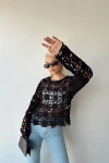Siyah Bisiklet Yaka Tığ Işi Dantel Bluz