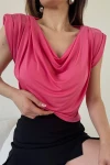 Siyah Degaje Yaka Vatkalı Yumuşak Dokulu Yazlık Bluz