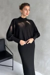 Siyah Dokulu Yırtmaç Detaylı Etek Ve Bluz 2'Li Takım