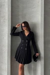 Siyah Düğme Detaylı Piliseli Dokuma Ceket Elbise
