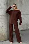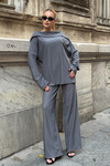 Siyah Düşük Yaka Rahat Kesim Yumuşak Dokulu Bluz Ve Pantolon Alt Üst Takım