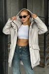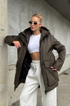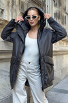 Siyah Geniş Cepli Kapüşonlu Uzun Mont