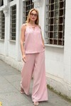 Siyah İp Askılı Kendinden Dokulu Alt Üst Takım ;%100 Keten