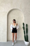Siyah Kendinden Kemerli Cepli Gabardin Yazlık Şort