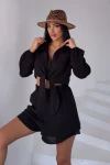Siyah Müslin Keten Şortlu Alt Üst Takım